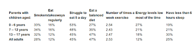 Pruhealth denkt dat dit verklaart kan worden door een minder gezonde levensstijl van de ‘werkende’ ouder: ze eten minder gezond, en slapen en bewegen minder.