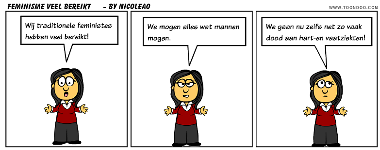 DoornicoleaoBron: nporadio.nl Nederlandse vrouwen zijn tegenwoordig minstens zo goed opgeleid als mannen, zo niet beter. Waarom werken ze dan zo vaak in een parttime baan? Met andere woorden: waarom zie je de goede opleiding niet terug op de arbeidsmarkt? Dat is het onderwerp van de radio uitzending onder leiding van Jort Kelder. Hij praat met…