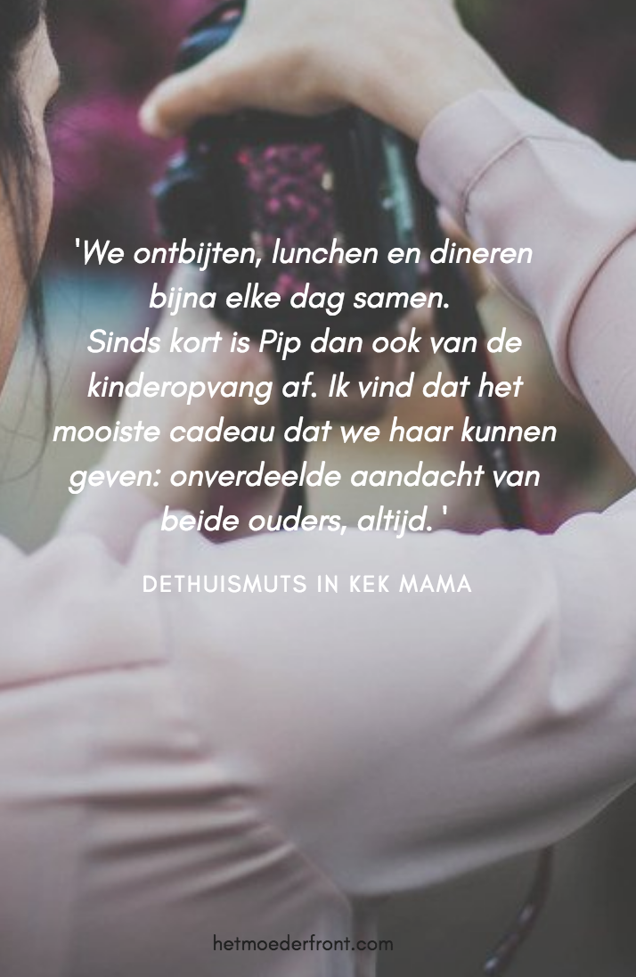 ‘We ontbijten, lunchen en dineren bijna elke dag samen.Sinds kort is Pip dan ook van de kinderopvang af. Ik vind dat het mooiste cadeau dat we haar kunnen geven: onverdeelde aanacht van beide ouders, altijd. ‘