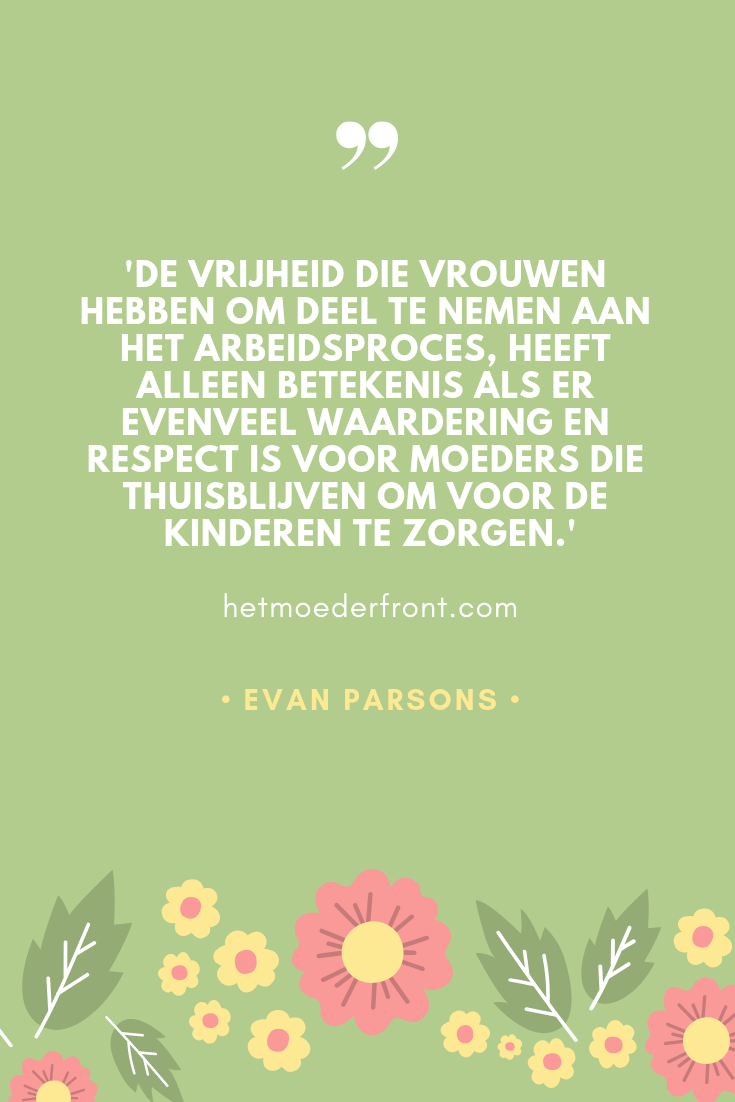 De vrijheid die vrouwen hebben om deel te nemen aan het arbeidsproces heeft alleen betekenis als er evenveel waardering en respect is voor moeders die thuis blijven om voor de kinderen te zorgen, aldus Parsons.