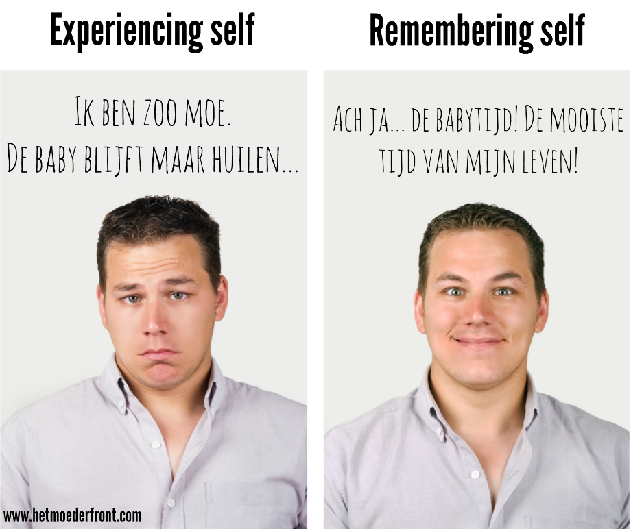 De Amerikaanse psycholoog Daniel Kahneman verklaart deze paradox in termen van een ‘experiencing self’ versus een ‘remembering self’. Je ‘experiencing self’ is het zelf dat leeft en ervaart. Je zou dus verwachten dat dit dominant is. Maar het wonderlijke is, dat het remembering self veel meer gewicht in de schaal legt. En dat, terwijl ons geheugen berucht is om haar onbetrouwbaarheid.